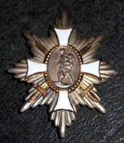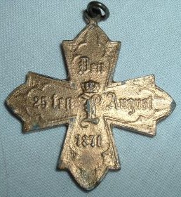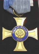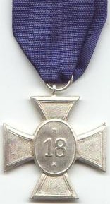 Croix de 2ème classe, avec ruban (la 1ère classe n'a pas de ruban mais une fixation -vis ou agrafe-).
