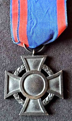 Croix de 2ème classe, avec ruban (la 1ère classe n'a pas de ruban mais une fixation -vis ou agrafe-).