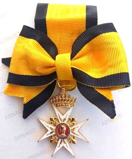 Croix du Chapitre des Chanoinesses de BOURBOURG Ruban : jaune avec un liseré noir sur chaque bord.