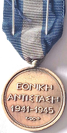 Etoile Commémorative des campagnes de 1941 à 1945 des Forces Terrestres créée le 2 mars 1946 pour récompenser tous les membres des forces armées grecques qui ont participé, aux côtés des Alliés, à la 2° Guerre Mondiale, contre l'Italie principalement 2 types de médailles : celles des forces terrestres et celle des forces navales. La différence se fait avec la légende figurant au verso de la médaille. Cf ci-dessus. (ruban non conforme)