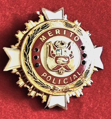 Ordre du Mérite de la Garde Nationale et de la Police L’Ordre du Mérite de la Garde Nationale et de la Police (Orden al Mérito de la Guardia Civil y la Policia)a d’abord été créé en tant que Croix du Mérite de la Police en 1945, devenues Ordre le 31 mai 1950. L’Ordre a été décerné aux membres de la police, de la Garde civile et aux citoyens, péruviens et étrangers, en reconnaissance de leur action exceptionnelle et de leur service méritoire visant à améliorer les institutions de la police et de la Garde civile. L’Ordre comprenait huit grades : Grand-Croix, Grand Officier, Commandeur, Officier et Chevalier. L’Ordre a été dissous en 1988 lorsque la Garde civile a été fusionnée avec la Police nationale.