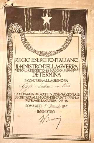Médaille de la Gratitude Nationale pour les mères des tués de la 1ère Guerre Mondiale (ITALIE) Photo : Merlin BENELHOCINE |