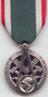 ORDRE DU MÉRITE DU TRAVAIL Créé par Décret en date du 21 janvier 1957, l'Ordre était destiné à récompenser toute personne s'étant distinguée, soit par sa valeur professionnelle, soit par la durée et la qualité de ses services, soit par son comportement à l'égard de ses compagnons de travail. L'Ordre comprenait trois classes : Chevalier, Officier et Commandeur. L'Ordre était géré par le Ministre du Travail, assisté d'un Conseil de l'Ordre. Le bijou était en argent pour le grade de Chevalier, en or ou en vermeil pour les deux autres grades. Il est à noter que le Gouvernement de Vichy avait déjà créé un Ordre National du Travail en 1941, Ordre qui fut aboli en 1944 (Cf. page précédente).