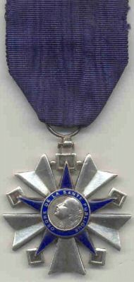 ORDRE DU MÉRITE MILITAIRE Créé par la Loi du 22 mars 1957, l'Ordre était destiné à récompenser, en temps de paix, les activités volontaires des cadres réservistes, dans l'instruction des Réserves et la préparation de la Défense Nationale. Il pouvait également être décerné aux cadres d'active participant à l'instruction des Réserves en dehors de leur emploi habituel. Cet Ordre remplaça la Croix des Services Militaires Volontaires (dont il reprit le dessin) créée en 1934. Après la disparition de l'Ordre en 1963, une nouvelle Médaille des Services Militaires Volontaires vit le jour en 1975. L'Ordre comportait trois classes : Chevalier, Officier et Commandeur. La croix de Chevalier était en argent, celle d'Officier était en vermeil. La croix de Commandeur était en or avec les branches émaillées de bleu et une bélière de feuilles de laurier.