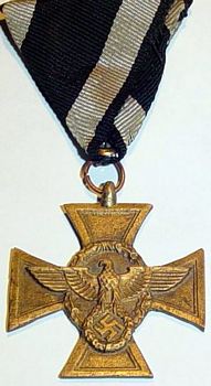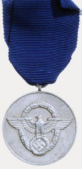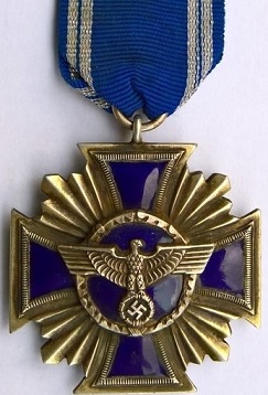 Médaille des Services dans la Police (Polizei-Dienstauszeichnung) créée le 30 janvier 1938, pour récompenserles services dans la Police. 3 classes : croix d'or, croix d'argent et médaille ronde. Ici : croix d'or et médaille ronde