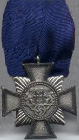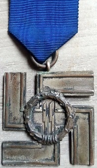 SS-Dienstauszeichnung Médaille pour services longs dans la SS créé le 30 janvier 1938 pour récompenser la loyauté et un temps de service irréprochable comme membre de la SS. 4 échelons : 2 médailles argent et or pour 4 et 8 ans de services, 2 croix gammées argent et or pour 12 et 25 ans de service. Ici la croix pour 12 ans de services.