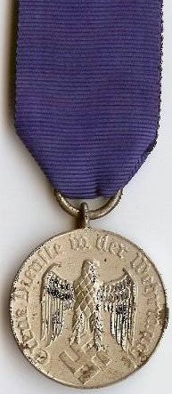 Médaille de Service de longue durée de la Wehrmacht créée le 16 mars 1936 5 classes : de 1 à 4 plus une classe spéciale pour 40 ans de service