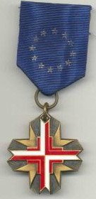 ORDRE du MÉRITE FÉDÉRAL Créé le 7 septembre 1951 par le Président Théodore HEUSS, cet Ordre est le premier Ordre de la République Fédérale et est destiné à récompenser les services exceptionnels. Cet Ordre comporte 7 classes, dont les insignes diffèrent selon les classes, de telle sorte qu'il existe quatre plaques différentes : à 8, 6 ou 4 grandes pointes et à 4 petites pointes, sur lesquelles est fixée la croix patée rouge. La croix de 1° classe (en bas à gauche) se porte sans ruban. A l'Ordre est attachée une "Médaille de l'Ordre du Mérite"(en bas à droite) à 1 seule classe en or.