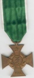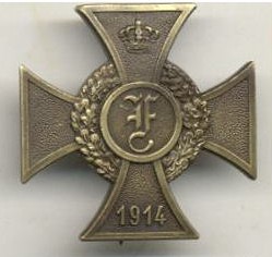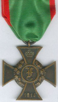 ORDRE du MÉRITE de GUERRE 1914 -1918 dite "Croix de Frédéric" créé le 12 décembre 1914 par le Duc Frédéric II pour récompenser tous ceux qui ont rendu d'éminents services durant la guerre, que ce soit comme combattants ou comme non-combattants. (à titre combattant : liserés rouges - non combattant : liserés blancs - sans ruban : 1° classe). |