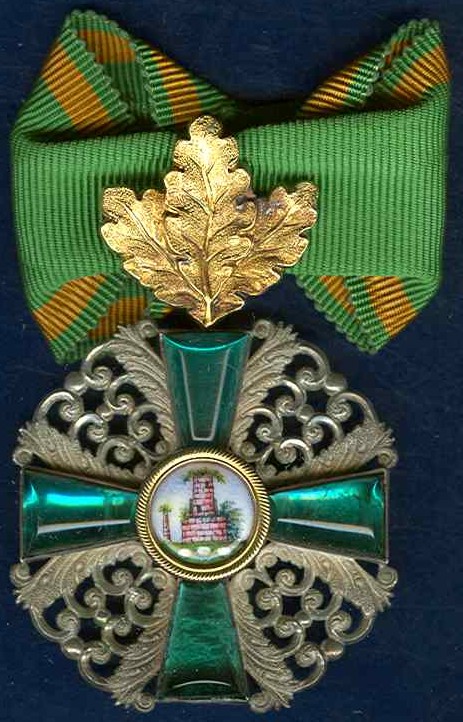 ORDRE du LION de ZOEHRINGEN Fondé le 26 décembre 1812 par le Grand-Duc Charles Louis Frédéric pour honorer le mérite, le talent, les vertus et les services rendus à l'Etat. Qutre classes : Grand-Croix (écharpe et plaque), Commandeur de 1ere classe (sautoir avec plaque), Commandeur de 2eme classe (sautoir), Chevalier (boutonnière). Ruban vert à liseré orange sur chaque côté. Une classe militaire existe,qui présente deux glaives entrecroisés sur le bijou.