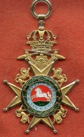 ORDRE de GUELFE Cet Ordre fut fondé par le Prince Régent George, futur George IV d'Angleterre, puis fut récupéré par la Couronne de Hanovre. En effet, selon la Loi Salique, une femme ne pouvait monter sur le trône de Hanovre. Aussi, à la mort du Roi Guillaume IV de Hanovre en 1837, ce fut le Prince Auguste, Duc de Cumberland, qui devint Roi de Hanovre. L'Ordre de Guelfe quitta alors la Grande-Bretagne et devint un Ordre exclusivement attaché à cette ville, perdant ainsi son aspect britannique. |
