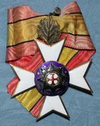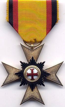 Croix du Mérite L'Ordre du Mérite a été fondé le 3 juillet 1857 par le Prince Georges - Victor puis modifié les 14/01/1871 et 26/09/1878. Cet Ordre comprend quatre classes : 1° classe en or, portée en sautoir ; 2° classe en or portée sur la poitrine ; 3° classe en argent, également portée sur la poitrine, 4° classe en bronze suspendue à un ruban. Il existe également un Ordre du Mérite Militaire, dont le ruban diffère.