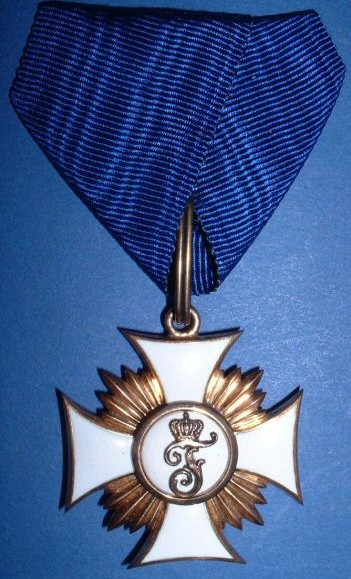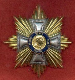 ORDRE de FRÉDÉRIC Fondé le 1° janvier 1830 par Guillaume IV ; étendu en 1856 et 1870 ; statuts du 18 février 1890. L'Ordre comprend 5 grades : Grand-Croix, Commandeur de 1° classe avec plaque, Commandeur de 2° classe, Chevalier de 1° classe, Chevalier de 2° classe. Pour les mérites militaires, la décoration est surmontée de 2 glaives entrecroisés. Ruban bleu de ciel. |