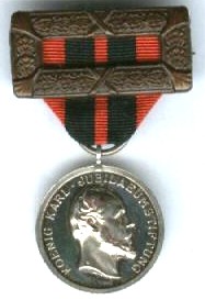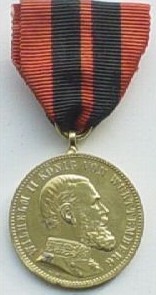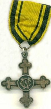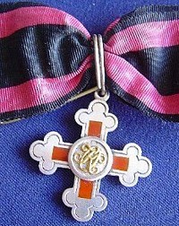 ORDRE d'OLGA Fondé le 27 juin 1871 par le Roi Charles I°, cet Ordre est spécialement destiné à récompenser les actions philanthropiques. Il est aussi accessible aux dames. L'Ordre ne comprend qu'une seule classe : Chevalier. Ruban noir avec un large liseré carmin sur chaque bord. |