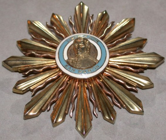 ORDRE de SAINT - MARTIN Fondé le 17 août 1943 et modifié le 17 décembre 1957, l'Ordre vise à récompenser les mérites exceptionnels, tant civils que militaires. Il tient son nom du Général Saint Martin, héros de la libération argentine. L'Ordre comporte six classes et peut-être accordé à des etrangers. Ruban bleu clair à liserés blancs.