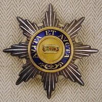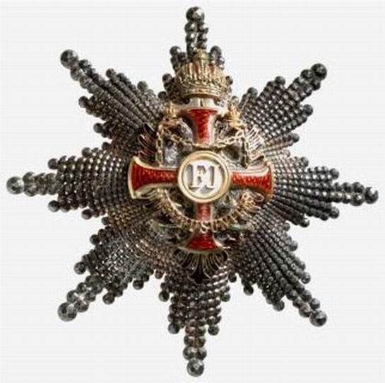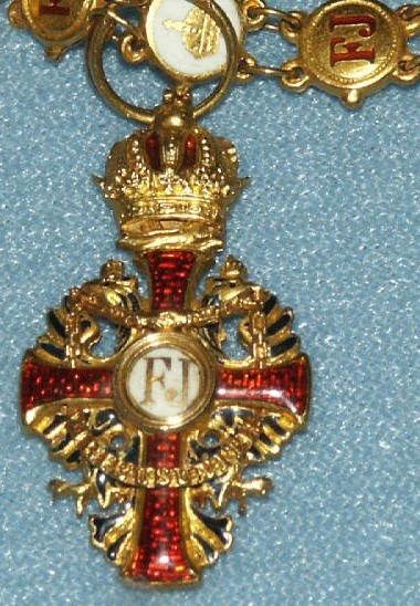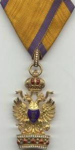 ORDRE de la COURONNE de FER Cet Ordre a été fondé le 5 juin 1805 par Napoléon I ° en tant que Roi d'Italie. L'Ordre fut éteint en 1814 à la chute de l'Empereur, puis rétabli le 12 février 1816 par l'Empereur d'Autriche François I ° pour récompenser les mérites civils et militaires. L'Ordre est réservé à la noblesse. L'Ordre comprend trois classes, dont le quota est fixé à 100 titulaires = 20 Grands-Croix, 30 Commandeurs et 50 Chevaliers (non compris les princes autrichiens ni les étrangers). Ruban orange à raie bleu foncé sur chaque bord.