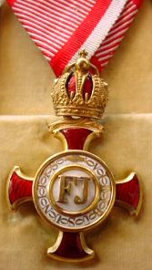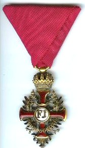 ORDRE de FRANÇOIS - JOSEPH Fondé le 2 décembre 1849 par l'Empereur François - Joseph I°, modifié le 25 décembre 1856. L'Ordre a pour but de récompenser, dans toutes les classes de la société et sans égard à la religion, les services éminents rendus dans l'agriculture, l'industrie et le commerce, les inventions, découvertes ou améliorations, les actes d'humanité et de dévouement. Cet Ordre comprend trois classes : Grand-Croix, Commandeur, Chevalier. Ruban rouge ponceau.
