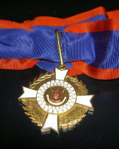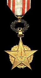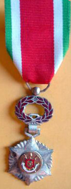 Ordre du Mérite Patriotique destiné à récompenser les services et actes de bravoure accomplis au sein des forces armées mais peut aussi être décerné à des civils ayant accomplis des actes de bravoure exceptionnels. L'Ordre comporte 7 classes (4 grades et 3 médailles -or, argent et bronze-) |