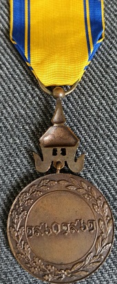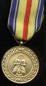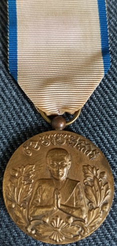 Médaille du Roi Norodom Sihanouk (échelon bronze) qui régna du 28 octobre 1941 au 2 mars 1955 et qui règne à nouveau depuis le 24 septembre 1993. |