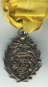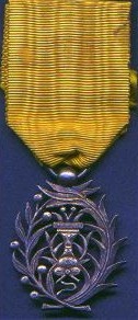 Médaille du Travail Trois grades : or, argent et bronze. Le ruban est celui d'avant 1975. |