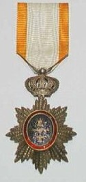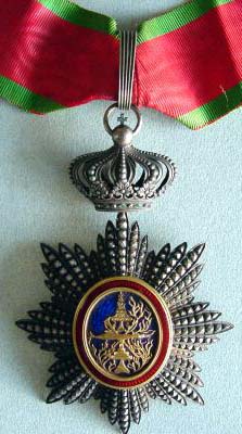 ORDRE ROYAL du CAMBODGE Fondé le 8 février 1864 par le Roi Norodom I°, cet Ordre devait récompenser les services Civils et Militaires. Il devint Ordre Colonial entre 1896 et 1948. Le centre du médaillon figure les armes royales. Cet Ordre comporte 5 classes : Grand-Croix, Grand-Officier, Commandeur, Officier et Chevalier. On distingue un 1° modèle, plus simple, qui ne porte pas de couronne. D'origine, le ruban est rouge à liserés verts sur les côtés. Cependant, devenu Ordre Colonial en 1896, le ruban devint blanc à lisérés oranges (décret du 05/12/1899) car la décoration, quand elle était portée à la boutonnière, pouvait être confondue avec la Légion d'Honneur. Par décret du 25/08/1948, redevenu Ordre National Cambodgien, cet Ordre retrouva son ruban d'origine. Il était attribué aux Français qui pouvaient justifier d'un minimum de 9 années de présence au Cambodge. Abandonné par les Khmers Rouges en 1975, l'Ordre fut rétabli par Décret Royal du 5 octobre 1995. |