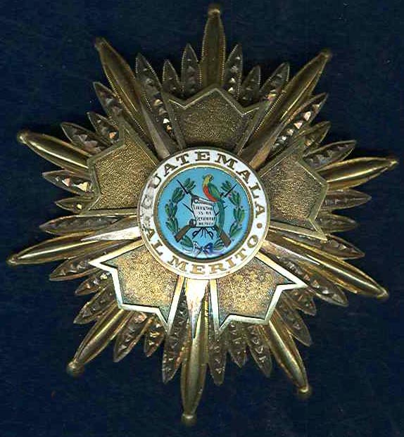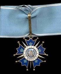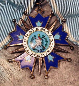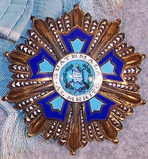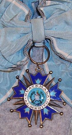 ORDRE de QUETZAL Créé en 1936 pour récompenser les services scientifiques, artistiques et litéraires, l'Ordre comporte six classes : Collier, Grand-Croix, Grand-officier, Commandeur, Officier et Chevalier. Ruban bleu pâle avec 1 liseré blanc sur chaque bord. |
