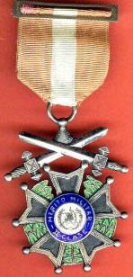 Croix du Mérite Militaire créé en Octobre 1947 pour récompenser les mérites militaires. 3 grades :1°, 2° et 3° classe. |