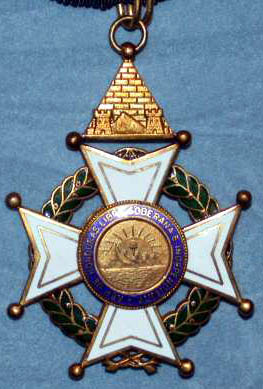 ORDRE de SANTA ROSA (ou de la Civilisation) Fondé par le Corps législatif le 21 février 1868 pour récompenser tous les genres de mérite ainsi que les services importants rendus à la République. Cinq classes calquées sur la Légion d'Honneur française. Ruban à trois bandes égales rouge, bleu clair, rouge ; le bleu clair comprenant une bande blanche verticale en son milieu.