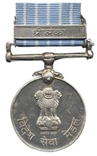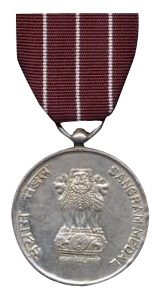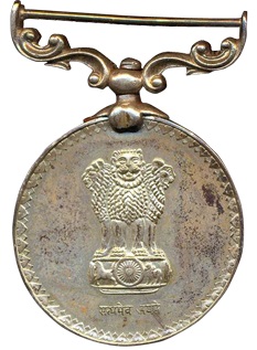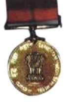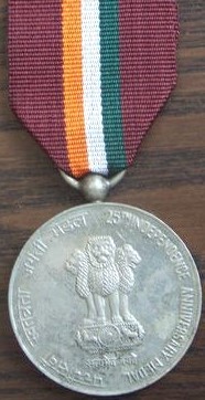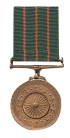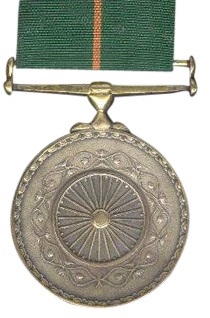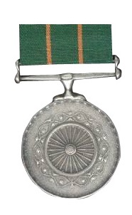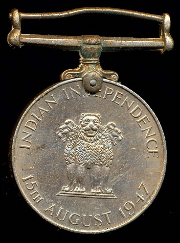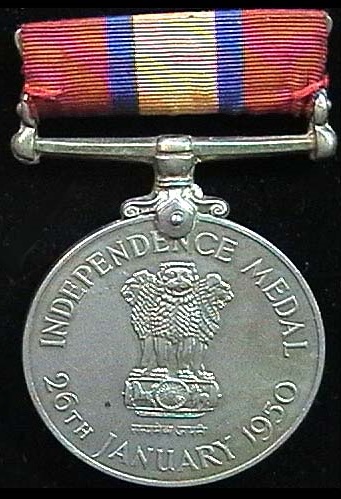 Médaille de l'Indépendance Ruban aux couleurs de l'Inde : 3 bandes verticales égales orange - blanc - vert 15 Août 1947 |
