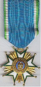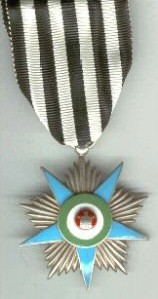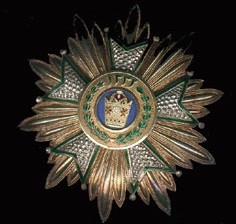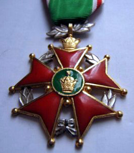 ORDRE de la COURONNE Créé en 1941 par le Shah Mohamed Reza I° qui venait de monter sur le trône. Cet Ordre comprenait 5 classes et était destiné à récompenser les services exceptionnels rendus au pays et à la couronne. Ruban jaune à bandes bleu ciel sur les bords. [(1) Photos : Musée Royal de l'Armée belge]