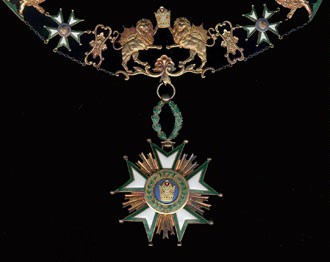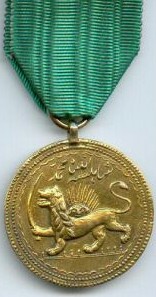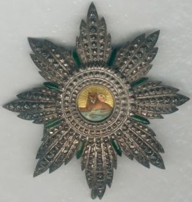 ORDRE du SOLEIL ET DU LION (NISHAN I HOMAYOUN) Fondé en 1808 par le SHAH Feth-Ali et réorganisé en 1857-1858. Cinq classes : Grand-Croix, Grand-Officier, Commandeur, Officier et Chevalier. Les décorations comptent, selon les classes, un nombre de rayons et de facettes différents : ici, la plaque de Grand-Officier (7 rayons et 2 rangs) et la plaque de Grand-Croix (8 rayons, 3 rangs).