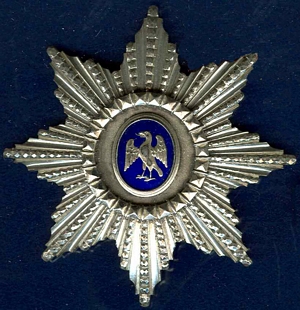 ORDRE du FAUCON Créé le 3 juillet 1921 par Christian X, Roi de Danemark et d'Islande, cet Ordre fut conservé par la République d'Islande lors de sa création en 1944, après avoir reçu de nouveaux status le 11 juillet 1944. Le modèle datant de la monarchie danoise porte la couronne royale en haut de la croix, contre une tête de fleur de lys actuellement (cf. ci-dessus les 2 modèles). De même, le modèle actuel porte la date de la création de la République (17 juin 1944) au verso, contre le monogramme du Roi pour le modèle danois. Cet Ordre comporte 4 classes : Grand-Croix, Grand-Chevalier avec plaque, Grand-Chevalier et Chevalier. Le Grand-Maître de l'Ordre est le Président de la République Islandaise.