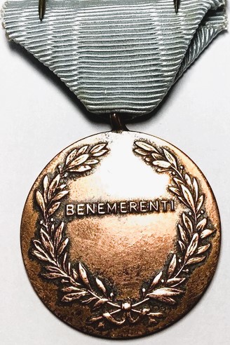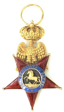 Cet Ordre a été fondé le 20 février 1868 par le Roi Victor-Emmanuel II pour récompenser les mérites civils et militaires, les belles actions et les services rendus à l'Etat. Décret du 3 décembre 1885. L'Ordre comporte cinq classes : Grand-Croix, Grand-Officier, Commandeur, Officier et Chevalier. Le nombre de Chevaliers n'est pas limité, celui des autres classes l'est. Le ruban est à trois bandes verticales rouge - blanc - rouge, la bande blanche étant du huitième de la largeur totale du ruban.