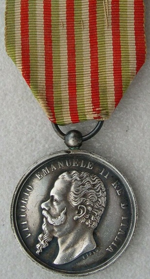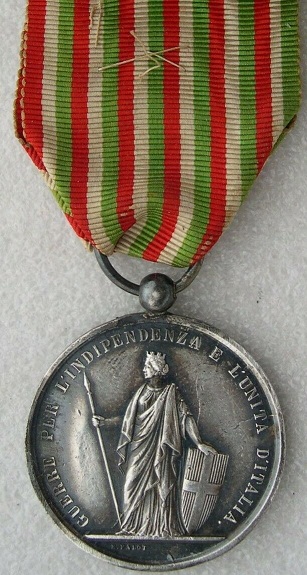 Médaille de la guerre pour l'Indépendance et l'Unité Italienne (1848 - 1870) créée par décret royal du 4 mars 1865 Le ruban peut porter des barrettes indiquant l'année concernée |
