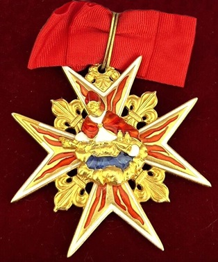 ORDRE ROYAL DE SAINT - JANVIER L'Ordre fut créé le 3 Juillet 1738 par Charles de Bourbon, Roi de Naples et Sicile, pour célébrer son mariage avec la Princesse Marie Amélie Walburge de Pologne et Saxe. L’Ordre se compose d’une seule classe de Chevaliers avec collier en or, écharpe, croix et plaque. Leur devoir principal était "l’accroissement, à n’importe quel prix, de la très Sainte Religion" et "opérer vertueusement" pour être "un exemple héroïque de la pitié envers Dieu et de la fidélité envers leur Prince". Le ruban est rouge ondoyant et la devise de l'Ordre est "IN SANGUINE FOEDUS". Le Grand Maître actuel est S.A.R. le Prince Ferdinand de Bourbon des Deux-Siciles, Duc de Castro.