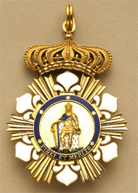 ORDRE ROYAL DE SAINT FERDINAND ET DU MÉRITE L'Ordre fut créé le 1er Avril 1800, par Ferdinand IV Roi de Naples et Sicile, pour récompenser ceux qui avaient rendu de très importants services et fait preuve de fidélité au Chef de la Maison Royale et à la Famille Royale. Les Statuts furent réformés en 1810. L’Ordre est divisé en trois Classes : Chevaliers de Grand-Croix, avec écharpe, croix et plaque - Chevaliers Commandeurs, avec ruban de cou et croix - Chevaliers, avec ruban et croix à la boutonnière. L'Ordre comprend également deux médailles : une d'or et une d'argent, annexées à l'Ordre. Le ruban est bleu ourlé de rouge foncé. Le Grand Maître actuel est S.A.R. le Prince Ferdinand de Bourbon des Deux-Siciles, Duc de Castro.