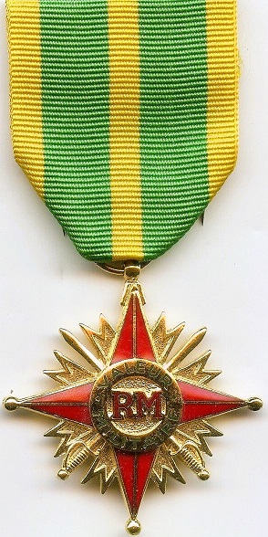 ÉTOILE D'ARGENT DU MÉRITE NATIONAL Elle a été instituée le 31 mai 1963. Elle comporte deux divisions figurées par un centre représentant soit une abeille, soit un lion debout. L'Etoile d'argent du Mérite National avec abeille est destiné à récompenser les bons et loyaux services rendus "avec efficience, dévouement et initiative créatrice" dans le domaine politique, administratif, militaire, économique, social ou artistique. Cinq ans de pratique professionnelle ou de service minimum sont exigés. L'Etoile d'argent du Mérite National avec lion debout est destiné à récompenser "un service ou une action particulièrement méritoire dans les mêmes domaines". Dans ce cas, aucune condition de durée de service n'est exigée. |