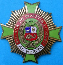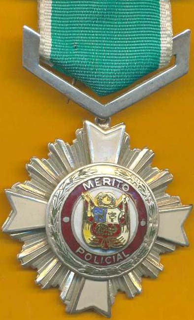 Ordre du Mérite de la Garde Nationale et de la Police L’Ordre du Mérite de la Garde Nationale et de la Police (Orden al Mérito de la Guardia Civil y la Policia)a d’abord été créé en tant que Croix du Mérite de la Police en 1945, devenues Ordre le 31 mai 1950. L’Ordre a été décerné aux membres de la police, de la Garde civile et aux citoyens, péruviens et étrangers, en reconnaissance de leur action exceptionnelle et de leur service méritoire visant à améliorer les institutions de la police et de la Garde civile. L’Ordre comprenait huit grades : Grand-Croix, Grand Officier, Commandeur, Officier et Chevalier. L’Ordre a été dissous en 1988 lorsque la Garde civile a été fusionnée avec la Police nationale.