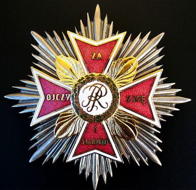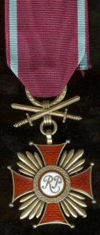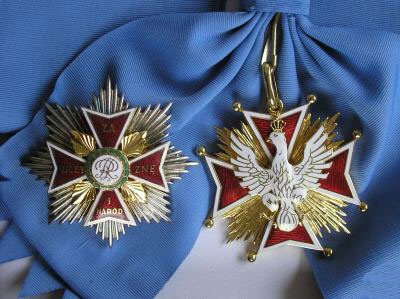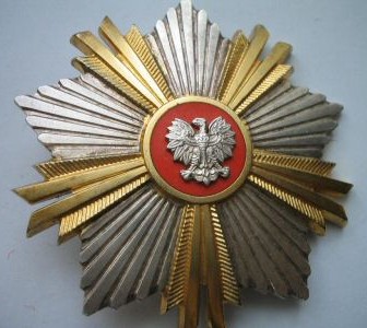 ORDRE de la POLOGNE RESTAURÉE Créé le 4 février 1921, cet Ordre était destiné à compléter l'Ordre Militaire de Virtuti Militari pour récompenser les actes exceptionnels de bravoure et de dévouement à titre civil. La République Populaire a conservé cet Ordre en ôtant la couronne posée sur la tête de l'Aigle polonais et en remplaçant la date de 1918 qui figurait au revers, par celle de 1944.