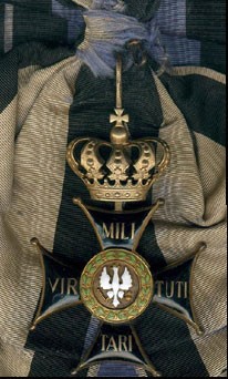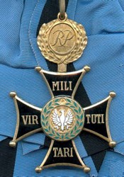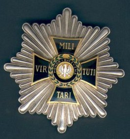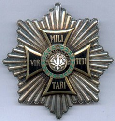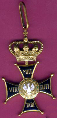 ORDRE du VIRTUTI MILITARI Fondé le 22 juin 1792 par le Roi Stanislas Auguste Poniatowski après la victoire de Zielence, lors de la guerre Russo-Polonaise, puis dissous en 1793, cet Ordre fut rétabli de 1807 à 1815 sous le nom de "Ordre Militaire du Duché de Varsovie". Il se prolongea ensuite de 1815 à 1831 sous le nom de "Ordre Militaire Polonais". Reconstitué par une loi de la Diète Polonaise en date du 1° août 1919, cet Ordre comprend 5 classes : Grand-Croix, Commandeur, Chevalier, Croix d'Or et Croix d'Argent. (1) Photo : Musée Royal de l'Armée belge