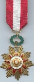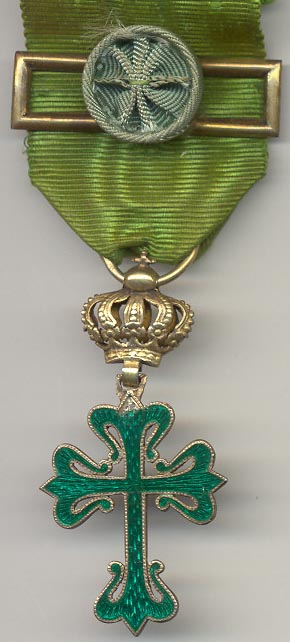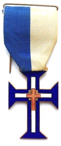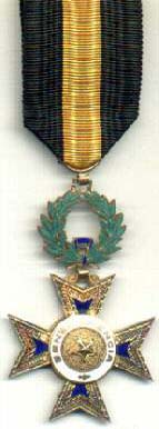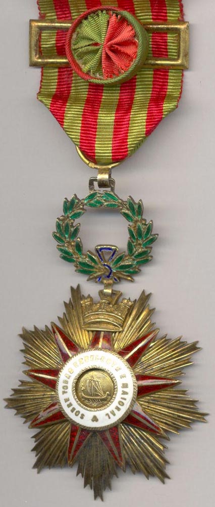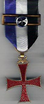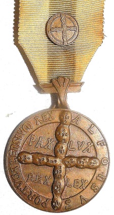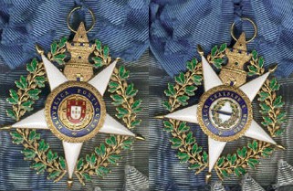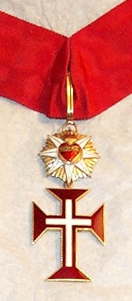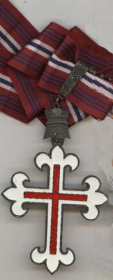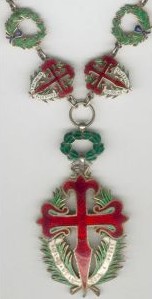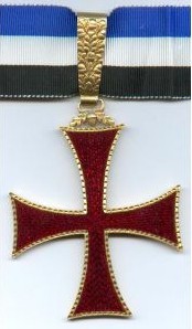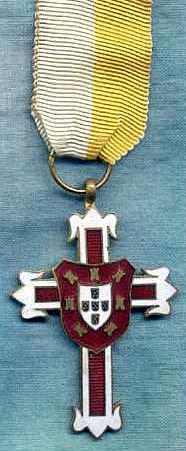 ORDRE ROYAL MILITAIRE du CHRIST Ordre fondé par le Roi Denis I° le 14 août 1318, il descend directement de l'Ordre du Temple dissous par le Pape Clément V en 1312 à la demande du Roi de France Philippe IV le Bel. Cet Ordre fut approuvé par le Pape Jean XXII en 1319 et sécularisé en 1789. Il servit à récompenser des services exceptionnels rendus à titre militaire, puis honora toutes les catégories de services. Aboli le 15 octobre 1910 lors de la proclamation de la République, il fut rétabli le 1° décembre 1918. Il fut le plus élevé des Ordres portugais. Cet Ordre comprend 3 classes. Ruban rouge vif. |