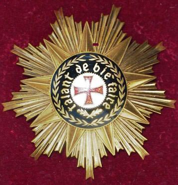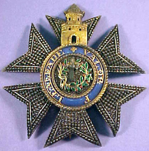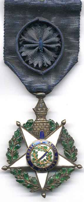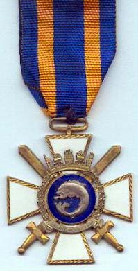 ORDRE MILITAIRE de la TOUR et de l'ÉPÉE Fondé en 1459 par Alphonse V l'Africain. Nouveaux statuts en 1832. Destiné à récompenser le mérite militaire. L'Ordre comprend quatre classes : Grand - Croix, Commandeur avec plaque, Officier et Chevalier. Ruban bleu. (1) Photo : Musée Royal de l'Armée belge