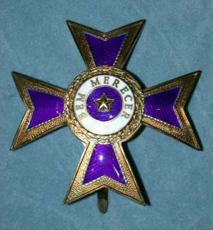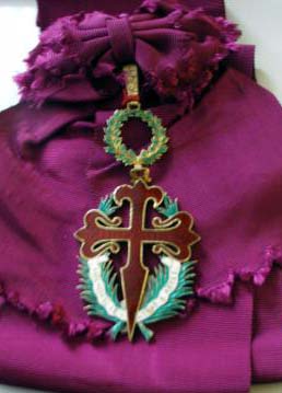 ORDRE de SAINT - JACQUES de l'ÉPÉE Originaire d'Espagne et introduit au Portugal en 1177 il fut destiné, le 31/10/1862, à récompenser les mérites scientifiques et littéraires. L'Ordre comprend 4 classes : Grands - Croix, Commandeurs avec plaque, Officiers, Chevaliers. Ruban violet.