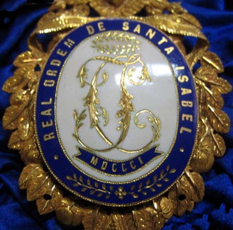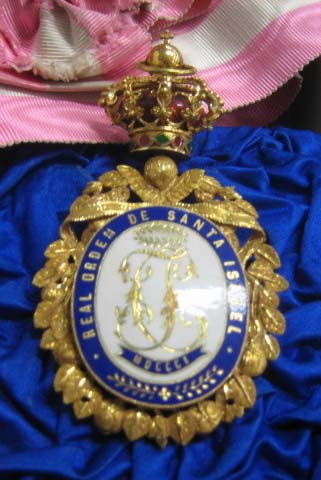 ORDRE ROYAL DE SAINTE ISABELLE (pour les Dames) Fondé le 4 novembre 1801, cet Ordre, outre les princesses royales, ne pouvait être attribué qu'à 26 dames nobles, mariées ayant au moins 26 ans et qui faisaient preuve d'une grande charité.