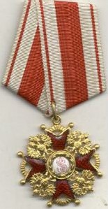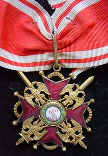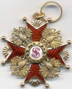 ORDRE de SAINT STANISLAS Fondé le 7 mai 1765 par Stanislas II, Roi de Pologne et incorporé aux ordres russes en 1831, modifié le 28 mai 1839, le 19 juin 1855 et le 25 mars 1856. 3 classes : Grand-Croix ; Commandeur (2 catégories : la 1° avec la croix surmontée d'une couronne, la 2° avec la croix seule) ; Chevalier. La médaille de droite est postérieure à 1916.