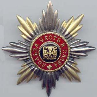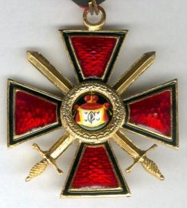 ORDRE de SAINT WLADIMIR Fondé le 4 octobre 1782 par l'Impératrice Catherine II pour les services civils et militaires, il confère la noblesse héréditaire. Quatre classes : Grands - Croix, Commandeur avec plaque, Commandeur et chevalier. Ruban rouge bordé de noir.