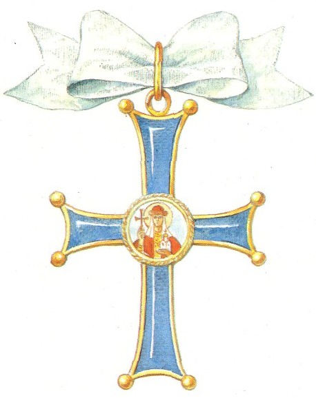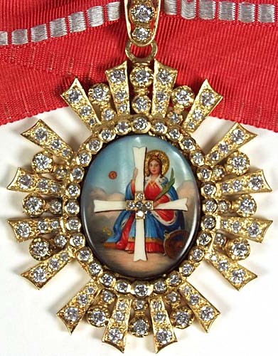 ORDRE de SAINTE CATHERINE (Pour les dames) Fondé en 1714 par le Tsar Pierre I°. Deux classes : la 1° : "Dames de la Grand - Croix" qui portent la décoration en écharpe de droite à gauche avec une plaque ; La 2° : "Dames de la Petite - Croix" qui portent la décoration sur le sein gauche.
