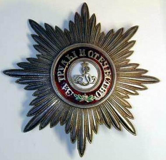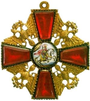 ORDRE de SAINT-GEORGES Fondé le 7 décembre 1769 par l'Impératrice Catherine II pour récompenser exclusivement les services militaires. En 1807, Alexandre I° y annexa une croix d'argent pour les sous-officiers et les soldats. 4 classes : Grand-Croix, Commandeur avec plaque, Commandeur et Chevalier. (1) Photos : Musée Royal de l'Armée belge