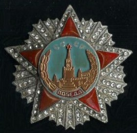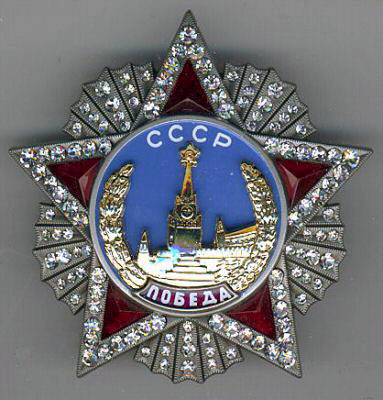 ORDRE de la VICTOIRE Institué le 8 Novembre 1943, il est réservé aux commandants de front et/ou de groupe de fronts ayant, grâce à l'action des troupes placées sous leur ordre, permis de faire évoluer la situation en faveur des forces soviétiques. C'est la décoration la plus importante en U.R.S.S.. Il a été décerné 21 fois.