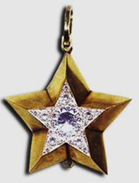 ÉTOILE de MARÉCHAL de l'UNION SOVIÈTIQUE Le 22 septembre 1935, le Comité exécutif central et le Conseil des commissaires du peuple de l'URSS avaient proposé à Staline de créer le titre de « Maréchal de l’Union Soviétique » pour les chefs les plus méritants du nouveau régime. Faisant suite à cette création du titre de Maréchal de l'Union Soviétique, le Présidium du Soviet Suprême de l'URSS a créé, par décret du 2 septembre 1940, la distinction de "l'Etoile de Maréchal de l'Union Soviétique" (Маршальская звезда). L’Etoile de Maréchal n’est pas un ordre en soi mais plutôt une distinction spécifique réservée aux seuls maréchaux des forces armées d’Union Soviétique. Elle peut être assimilée au bâton de maréchal décerné en France ou dans d'autre pays. L’Etoile de Maréchal existe en deux modèles différents. Un modèle (Grande Etoile avec diamants) pour les Maréchaux de l’Union Soviétique et Amiraux de la Flotte Soviétique et un modèle (Petite Etoile sans diamants) pour les généraux ou amiraux. L’étoile se porte soit attachée à un ruban de couleur (différente selon l’arme d’origine du récipiendaire) pour le petit modèle, soit ou à un ruban rouge moiré pour le grand modèle. Mais l’Etoile peur aussi se porter directement sur la cravate avec un système de fixation par épingle. Dans tous les cas l’insigne ne se porte pas sur l’uniforme mais autour du cou ou sur la cravate. On notera cependant qu’il n’est jamais porté autour du cou pendant et extérieur comme n’importe quelle cravate de commandeur d’un ordre dans d’autres pays. Ainsi, sur le portrait du Maréchal JOUKOV, ci-dessous, on voit bien l'Etoile accrochée sous le col mais il est à noter que l'on ne voit pas le ruban. ![]() |